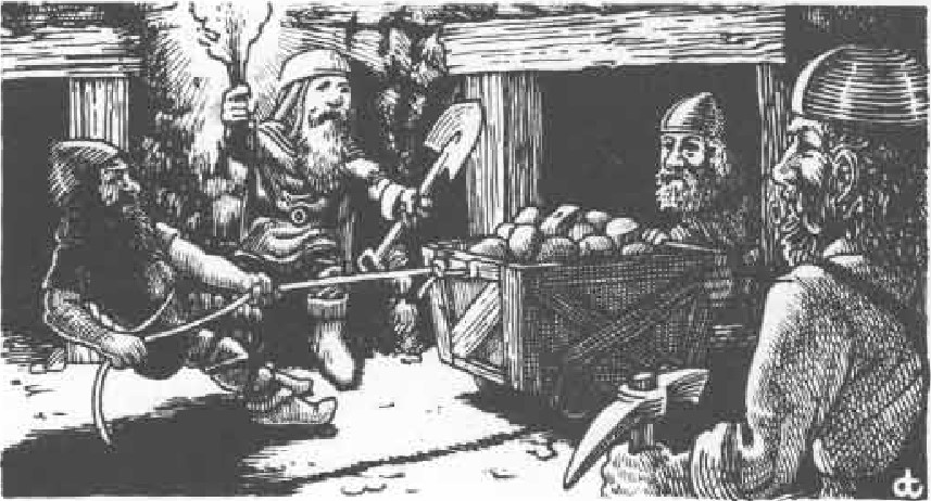Here I’ve presented a simple method of mining, tying the riches found to various treasure types listed in the Monster Manual. Is it scientific? No. But it is simple, and you will be able to determine a regular income for a dwarf village. Note that by using the Monster Manual treasure types, miners will occasionally find magic items. Those with no romance in their souls may choose to eliminate finding buried magic items but remember, AD&D is a fantasy game. The whole point of any rule is to generate interesting scenarios. What could be more exciting than your dwarf miners coming upon a lost and powerful artifact? The things the best kept hidden being brought out into the world to sow chaos is inherently good gaming.