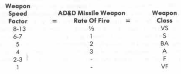 Note step B.2 which states “firing order is determined”. In Boot Hill this is called “First Shot Determination”. Without going into the fine details of how Boot Hill does this (get a copy of the rules), in general, a Boot Hill character has First Shot Determination value (based on a number of parameters) which is then modified by a number of situational considerations. For AD&D, what’s relevant is that the DMG includes a table that allows the determination of Boot Hill speed classifications for AD&D weaponry.