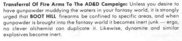 The discussion that follows is best understood with a copy of both the first edition DMG and a copy of the Boot Hill rules.