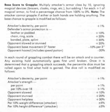 First, an overview of the wrestling rules. Without getting into the fine details wrestling in AD&D 1e is a multiple step process.