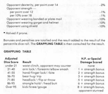 - Roll percentage dice to determine whether a grapple is successful.