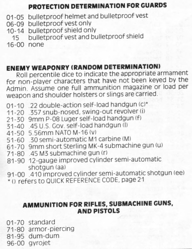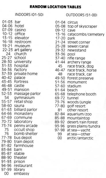 But Top Secret does not have a random mission generator. This in AD&D terms would be essential a combination of random terrain rolls combined with random monster encounter rolls, and other random NPC rolls (like castle inhabitants). In Top Secret it’s up to the “Administrator” (referee) to come up with missions. Or, is it?