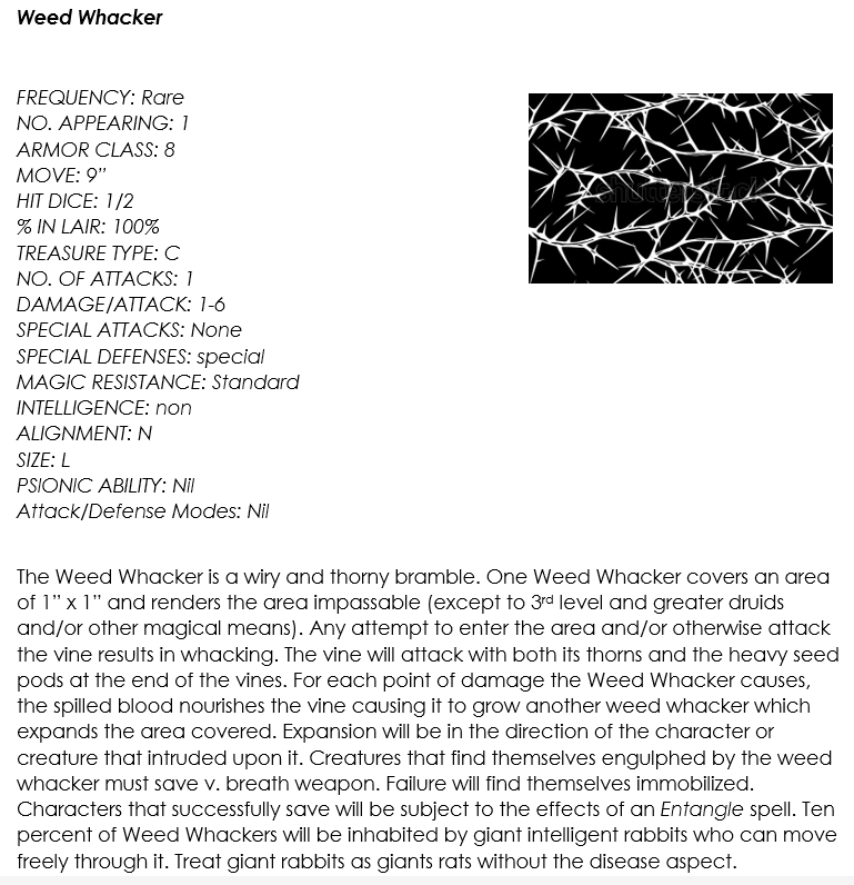 The Weed Whacker, AD&D Monster