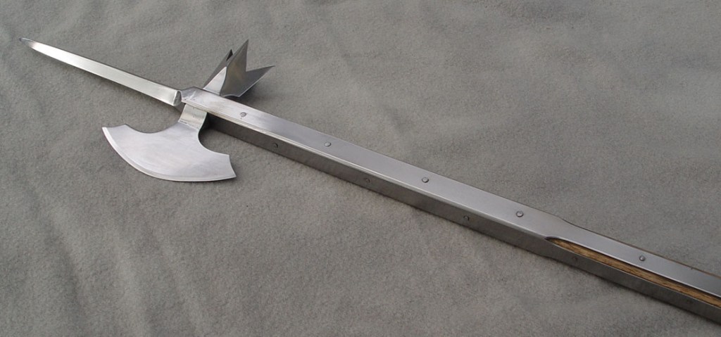 But if you’d like a little bit more choppy pole axe, that is also a knightly weapon, see below. This, with its shorter spike, does not have the dismounting ability and costs 8 gold pieces. It essentially fits right between the bec de corbin and a halberd.