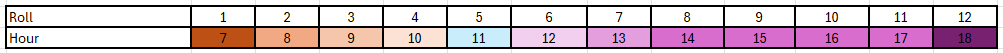 10. Determine the Hour of the Day the battle starts. Hours given are in military time. The Daimyos may shift the roll one place for each level the Daimyo has, starting with the lowest ranked Daimyo. The hour may be shifted outside the range of the table, in which the battle occurs at night.