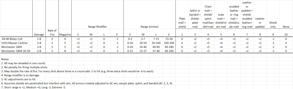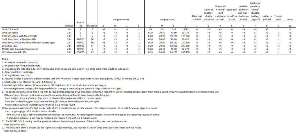 Inspired by this proposal to runs a Pancho Villa Expedition for AD&D/Boot Hill. It seems like if this is to be done, we need stats for the equipment of the time. With information from the articles here and here, here we go. Also related, my blog post on Boot Hill weapons for AD&D here. Below are the stats for Pancho Villa weapons, followed by those of the US Pancho Villa Expedition.