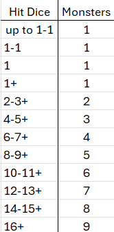 12. Level Dice. A character when attacking or defending adds to their pool dice according to the Level Table. The dice type are equal to the die type used by that class (d4 for magic users, d6 for thieves, d8 for clerics, etc.). Monsters use d8s and get the number of dice allowed by Monter Table. When allocating Level Dice, a character sets aside dice for attack and defense within the round. The total dice assigned to attack or defense may never total more than their total level dice. For example, a tenth level fighter has six level dice, he may choose to assign three each to attack and defend, all to attack, or all to defense, or whatever proportion he wants. (9/27/25 addition in italics)