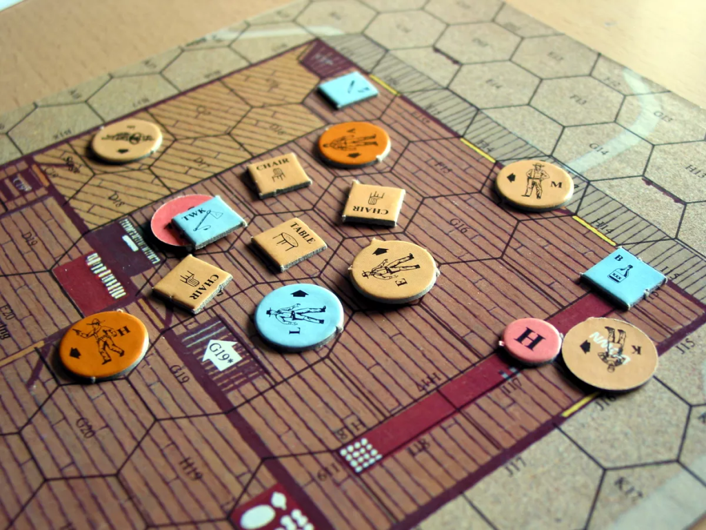 Or, at least, that’s my speculation. I’ve never played the Role Playing aspect of the game. But, that is my guess. It’s much more defined that a typical Braunstein-like game. But, also, it provides the base tropes of the genre from which improvisation can occur. So, in a way, it is an anti-Braunstein, in that the structure is very rigid. Yet, it also has a flexibility that is built in which can result in a meta-Braunstein like result. Players are aware of what’s going on with all the characters, what the range of possibility in scenarios are available, then use the knowledge to influence the next step in the game.