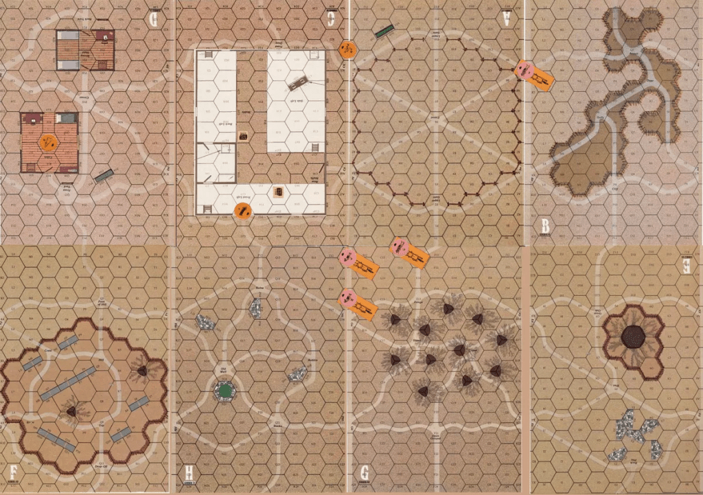 The 1975 edition provides no specific setting in place or time except the broad era of the wild west. The campaign rules leave it up to the referee to make a map at two miles per hex.
