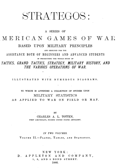 Strategos was an set of military professional war gaming rules by Charles Totten. It is known that Dave Arneson and his Minneapolis crew had based some of their early wargames on simplified or modified versions of Strategos. Meanwhile Gary Gygax in Lake Geneva had roots with Tony Bath. And, of course, there are likely many others early war game designers that Arneson and Gygax drew from. But it is Strategos that I was looking at today and which generated my idea.